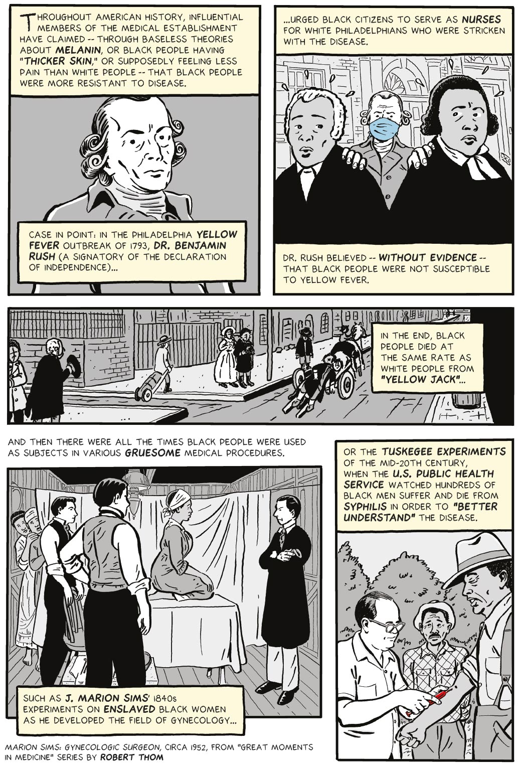 - A Tale of Two Pandemics: A Nonfiction Comic About Historical Racial Health Disparities” [color story; W/A/L/C]